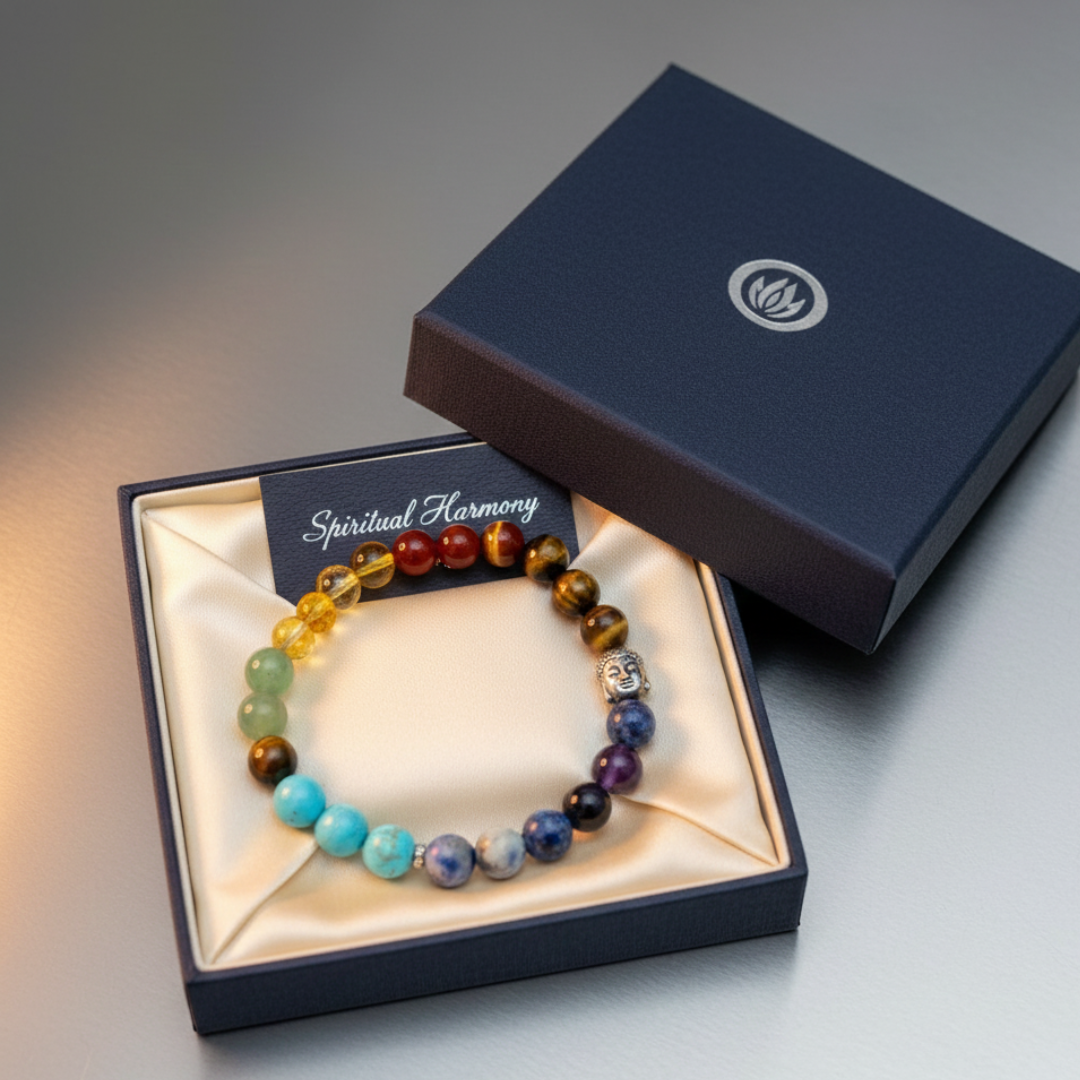 Full 7 Chakra Bracelet by Shiv Sakti Ratna Carefully handcrafted using 100% natural, premium-grade crystals, this bracelet aligns all seven chakras to help restore emotional balance, mental clarity, and spiritual harmony. Designed for spiritual seekers, wellness enthusiasts, meditators, and energy healers, this bracelet is more than an accessory—it’s a tool for transformation. Key Benefits Reduces Stress & Anxiety Fosters Calmness & Inner Peace Promotes Mental Balance & Stability Enhances Spiritual Growth & Self-Awareness Strengthens Aura & Energy Field Helps Restore Overall Life Balance Natural Chakra Crystal Composition Each stone corresponds to one of your seven energy centers: Amethyst – Crown Chakra | Spiritual awareness Lapis Lazuli – Third Eye Chakra | Intuition & wisdom Turquoise – Throat Chakra | Communication & clarity Green Aventurine – Heart Chakra | Love & healing Citrine – Solar Plexus Chakra | Confidence & willpower Carnelian – Sacral Chakra | Creativity & vitality Tiger Eye – Root Chakra | Stability & grounding These powerful crystals work together to cleanse, balance, and energize your full chakra system. Who Should Wear This Bracelet? Perfect for all genders, especially: Individuals seeking inner peace People looking for emotional balance Yoga practitioners Reiki practitioners Meditators Energy healers Anyone pursuing overall life balance Why Wear Crystals on the Left Hand? The left side of the body absorbs energy, while the right side releases it. For maximum healing benefits: Wear the bracelet on your left hand to absorb positive vibrations Our hands play a key role in energy exchange—right for giving, left for receiving Wearing on the left enhances the intake of the crystal’s natural properties Product Highlights 100% Natural, Genuine Crystals Handcrafted with attention to detail Strong elastic cord for durability Suitable for all wrist sizes (stretch fit) Ideal for daily wear, meditation & spiritual practices SEO Keywords 7 Chakra Bracelet, Natural Crystal Bracelet, Shiv Sakti Ratan Bracelet, Chakra Healing Jewelry, Energy Balancing Bracelet, Spiritual Healing Stones, Anxiety Relief Bracelet, Reiki Bracelet, Meditation Crystal Bracelet Bring harmony, clarity, and positive energy into your life with the Full 7 Chakra Bracelet – Shiv Sakti Ratan. A perfect blend of spirituality, style, and healing energy.