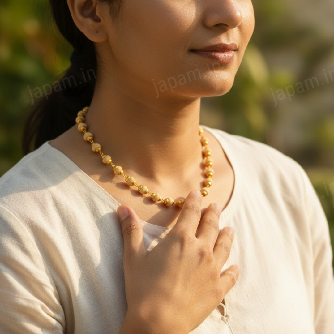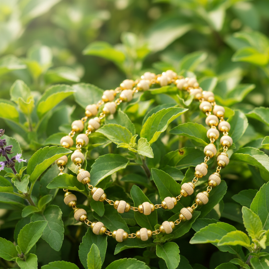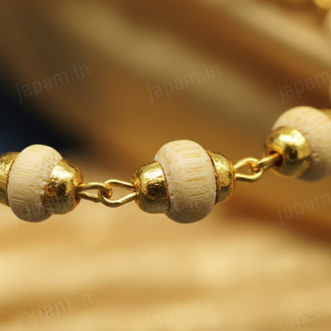 Gold Plated Tulsi Mala – Shiv Shakti Ratna Premium Spiritual Mala for Divine Protection & Bhakti Experience the sacred energy of devotion with our Gold Plated Tulsi Mala, a beautifully crafted spiritual accessory from Shiv Shakti Ratan. Designed for Krishna bhakts and spiritual seekers, this mala combines the purity of original Tulsi wood with the elegance of gold plating—making it perfect for daily wear, meditation, and worship. Product Description Worn with devotion by Krishna bhakts for generations, the Tulsi Mala is a timeless symbol of faith, purity, and divine connection. Every bead is crafted from authentic Tulsi wood, known for its powerful spiritual vibrations and blessings of Lord Krishna. This mala helps you stay grounded in bhakti, enhances inner peace, and brings positive harmony to your mind, aura, and spiritual journey. The subtle gold-plated accents add a refined touch, making it ideal for both spiritual use and traditional wear. Premium Craftsmanship Our Gold Plated Tulsi Mala is handcrafted with utmost care and precision under strict quality control. Each Tulsi bead is carefully selected Hand-polished for a smooth, comfortable finish Ensures consistent size, natural beauty & long-lasting durability This attention to detail makes it a perfect choice for daily puja, meditation, chanting, or gifting to devotees. Spiritual Benefits Invokes blessings of Lord Krishna & Vishnu Promotes peace, mental clarity & positive energy Supports meditation, chanting & spiritual practices Helps balance thoughts and elevate consciousness Acts as a protective charm, shielding your aura Care Instructions To preserve the sanctity and beauty of your Tulsi Mala: Keep away from water, sweat & harsh chemicals Avoid extreme temperatures Store in a soft pouch or moisture-free zip-lock bag Treat with respect, as each bead carries unique divine energy Perfect For Krishna Bhakts Meditation & Mantra Chanting Spiritual Seekers Festive & Traditional Wear Devotional Gifting SEO Keywords (Integrated): Gold Plated Tulsi Mala, Original Tulsi Mala, Krishna Tulsi Mala, Shiv Shakti Ratan Mala, Spiritual Tulsi Beads, Tulsi Mala for Meditation, Devotional Mala, Tulsi Kanthi Mala, Handmade Tulsi Mala, Gold Plated Spiritual Mala.