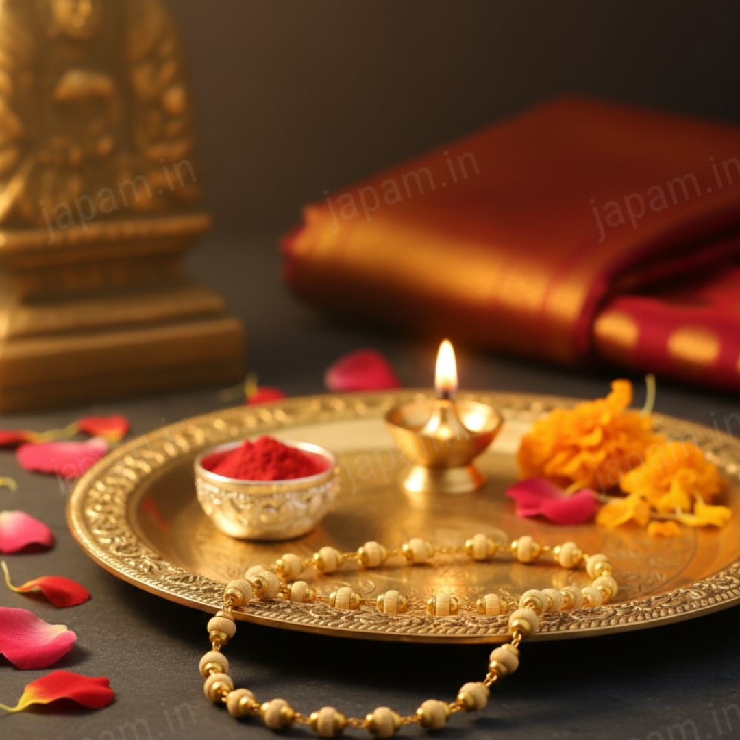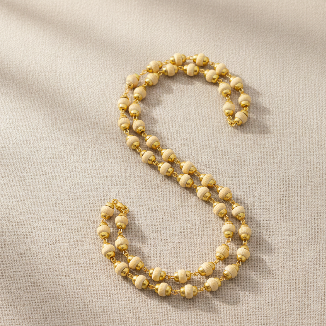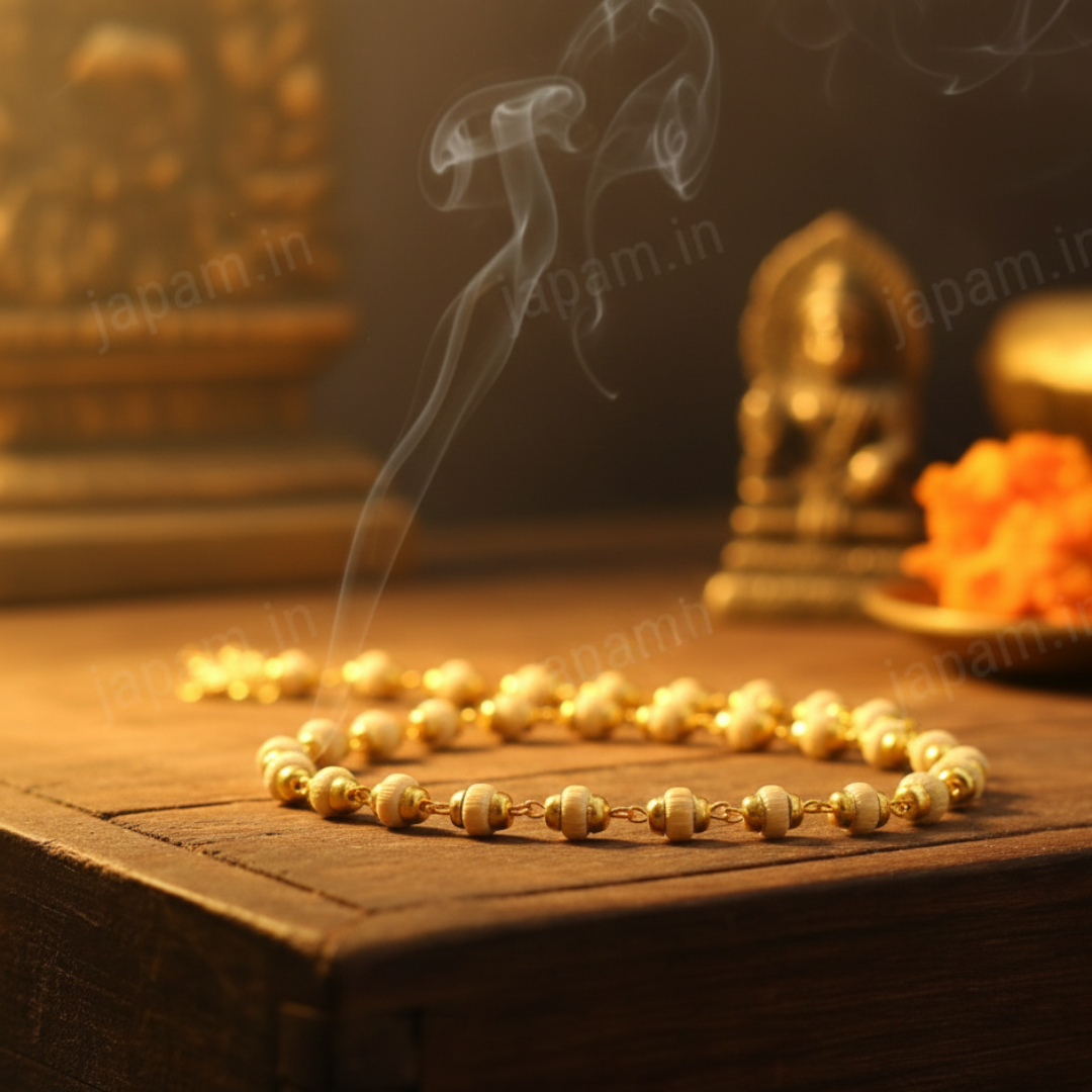 Gold Plated Tulsi Mala – Shiv Shakti Ratna Premium Spiritual Mala for Divine Protection & Bhakti Experience the sacred energy of devotion with our Gold Plated Tulsi Mala, a beautifully crafted spiritual accessory from Shiv Shakti Ratan. Designed for Krishna bhakts and spiritual seekers, this mala combines the purity of original Tulsi wood with the elegance of gold plating—making it perfect for daily wear, meditation, and worship. Product Description Worn with devotion by Krishna bhakts for generations, the Tulsi Mala is a timeless symbol of faith, purity, and divine connection. Every bead is crafted from authentic Tulsi wood, known for its powerful spiritual vibrations and blessings of Lord Krishna. This mala helps you stay grounded in bhakti, enhances inner peace, and brings positive harmony to your mind, aura, and spiritual journey. The subtle gold-plated accents add a refined touch, making it ideal for both spiritual use and traditional wear. Premium Craftsmanship Our Gold Plated Tulsi Mala is handcrafted with utmost care and precision under strict quality control. Each Tulsi bead is carefully selected Hand-polished for a smooth, comfortable finish Ensures consistent size, natural beauty & long-lasting durability This attention to detail makes it a perfect choice for daily puja, meditation, chanting, or gifting to devotees. Spiritual Benefits Invokes blessings of Lord Krishna & Vishnu Promotes peace, mental clarity & positive energy Supports meditation, chanting & spiritual practices Helps balance thoughts and elevate consciousness Acts as a protective charm, shielding your aura Care Instructions To preserve the sanctity and beauty of your Tulsi Mala: Keep away from water, sweat & harsh chemicals Avoid extreme temperatures Store in a soft pouch or moisture-free zip-lock bag Treat with respect, as each bead carries unique divine energy Perfect For Krishna Bhakts Meditation & Mantra Chanting Spiritual Seekers Festive & Traditional Wear Devotional Gifting SEO Keywords (Integrated): Gold Plated Tulsi Mala, Original Tulsi Mala, Krishna Tulsi Mala, Shiv Shakti Ratan Mala, Spiritual Tulsi Beads, Tulsi Mala for Meditation, Devotional Mala, Tulsi Kanthi Mala, Handmade Tulsi Mala, Gold Plated Spiritual Mala.