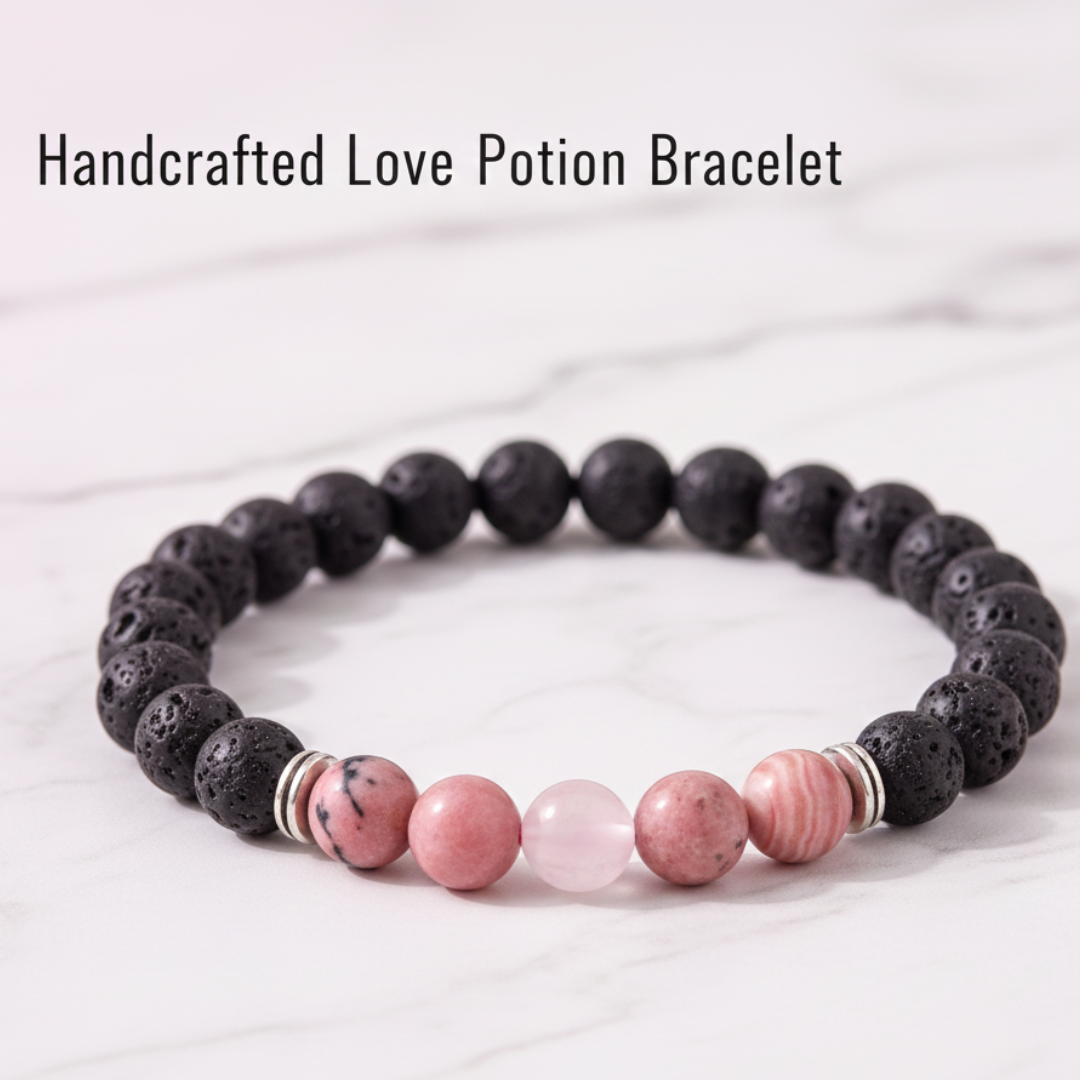 Love Potion Bracelet – Shiv Shakti Ratna Find Love, Keep Love Invite Love, Heal the Heart & Strengthen Your Relationships Discover the magic of connection with the Love Potion Bracelet by Shiv Shakti Ratan, a handcrafted masterpiece made with 100% natural crystals. This enchanting bracelet blends the powerful energies of Rose Quartz, Rhodonite, and Rhodochrosite—three heart-centered stones known to attract love, enhance emotional healing, and deepen meaningful bonds. Whether you're seeking new love, strengthening an existing relationship, or working on self-love, the Love Potion Bracelet supports you at every step of your emotional journey. Key Benefits Boost Self-Esteem & Confidence Wear this bracelet to overcome self-doubt and shine with inner confidence and charm. Attract New Love & Connections Rose Quartz and Rhodochrosite open the heart chakra, inviting love, romance, and soulful partnerships. Strengthen Existing Relationships Rhodonite encourages compassion, trust, and understanding—ideal for couples dealing with conflicts or communication gaps. Positive Self-Talk & Mindset Promotes emotional balance, encourages positive thinking, and nurtures your journey toward emotional healing. Heart Chakra Alignment These crystals work in harmony to activate the Heart Chakra, the center of love, compassion, and emotional well-being. Amplifies Positive Vibrations Wearing this bracelet daily supports harmony, happiness, and deeper connection in all your relationships. Who Should Wear the Love Potion Bracelet? Singles seeking love & emotional connection Couples experiencing conflict or misunderstandings Anyone on a self-love or self-care journey Individuals healing from heartbreak or emotional trauma Those struggling with low self-esteem or confidence All genders – suitable for everyone Crystal Composition Rose Quartz – Stone of unconditional love Rhodonite – Stone of compassion & emotional balance Rhodochrosite – Stone of healing & self-worth How to Wear Your Crystal Bracelet For maximum benefits, wear the Love Potion Bracelet on your left hand. Why? The left side of the body absorbs energy, while the right side releases it. Wearing crystals on the left hand helps absorb positive vibrations and attract love into your life. Just like we give blessings with the right hand, the left hand is for receiving energy and intentions. Why Choose Shiv Shakti Ratan? Authentic, 100% natural crystals Handcrafted with care and intention High-quality finishing for daily wear Designed for emotional healing, love & relationship harmony Embrace the energy of love, compassion, and confidence with the Love Potion Bracelet – your daily companion for attracting love, nurturing connections, and healing the heart.