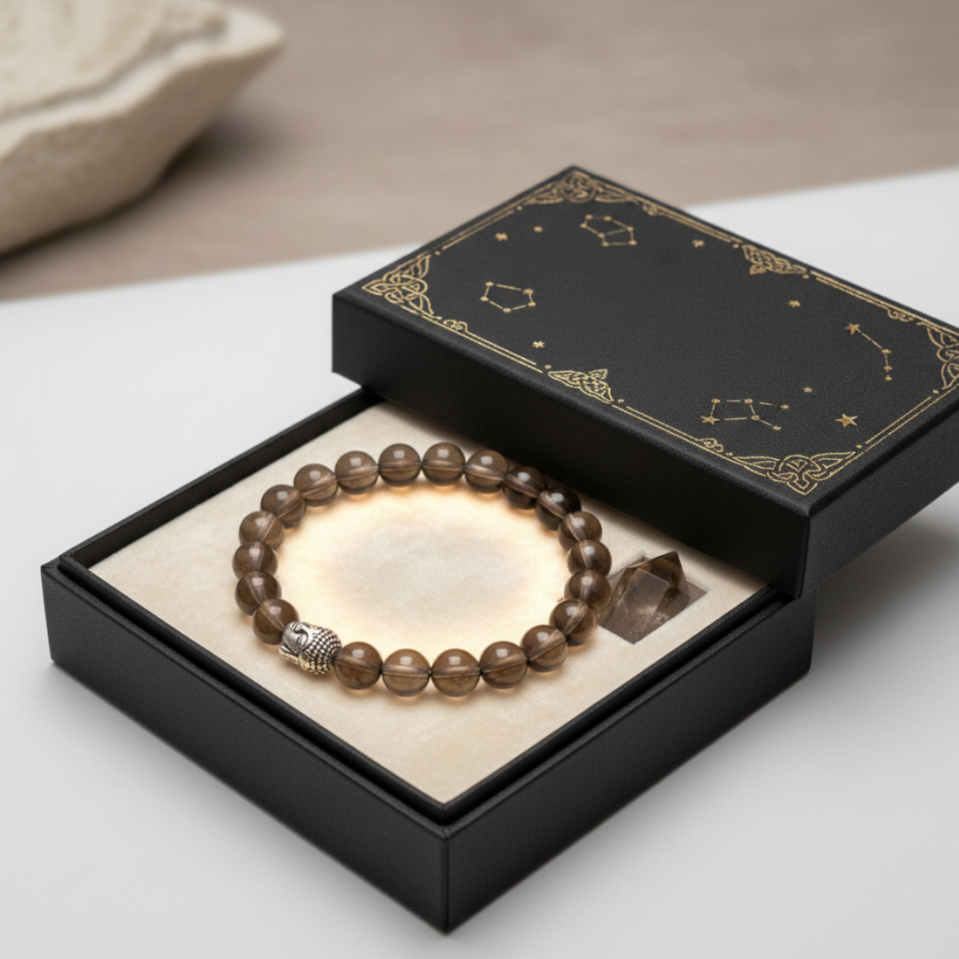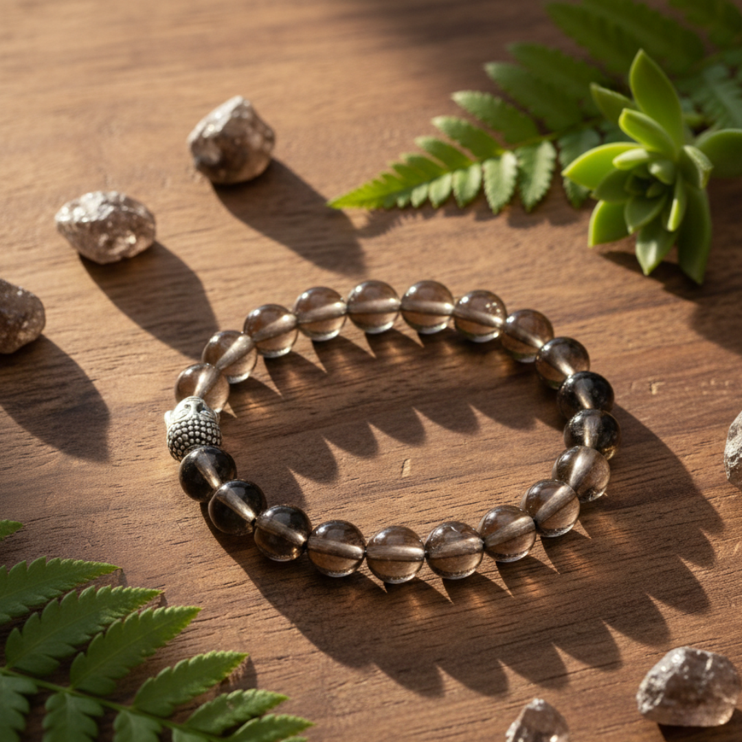 Smokey Quartz Bracelet – Shiv Shakti Ratna (100% Natural Crystal) Absorb Calmness • Release Negativity • Restore Balance Experience deep emotional healing and energetic protection with our Smokey Quartz Bracelet by Shiv Sakti Ratan, crafted from 100% natural, high-grade Smokey Quartz crystals. Known as a powerful grounding stone, Smokey Quartz absorbs negative vibrations, stabilizes emotions, and promotes a calm, balanced state of mind. Key Benefits of Smokey Quartz Reduces stress, anxiety, and emotional turbulence Promotes emotional balance, inner stability, and calmness Dispels negativity, fear, and self-doubt Enhances self-awareness, introspection, and personal growth Strengthens emotional resilience and coping abilities Improves mental clarity, focus, and clear thinking Who Should Wear This Bracelet Perfect for All Genders, especially those exposed to high emotional or energetic strain: First Responders (Police, Firefighters, EMTs) Healthcare Professionals Caregivers & Support Workers Empaths & Highly Sensitive Persons (HSPs) Crystal Wearing Guidance – Why Wear on the Left Hand? The left side of the body is the receiving side—it absorbs energy, healing vibrations, and benefits from crystals. Wearing your Smoky Quartz Bracelet on the left hand helps you: Absorb grounding, calming energy Strengthen emotional protection Maintain inner balance throughout the day In energy science, the left hand receives energy, while the right hand gives it. That’s why blessings or offerings are made with the right hand—but healing crystals are best worn on the left to draw in their natural benefits. Why Choose Shiv Sakti Ratan? 100% Natural and Authentic Smokey Quartz Handcrafted for maximum comfort and durability Energized and cleansed before delivery Suitable for daily wear Bring emotional strength, clarity, and grounded energy into your life with the Smokey Quartz Bracelet – Shiv Sakti Ratan