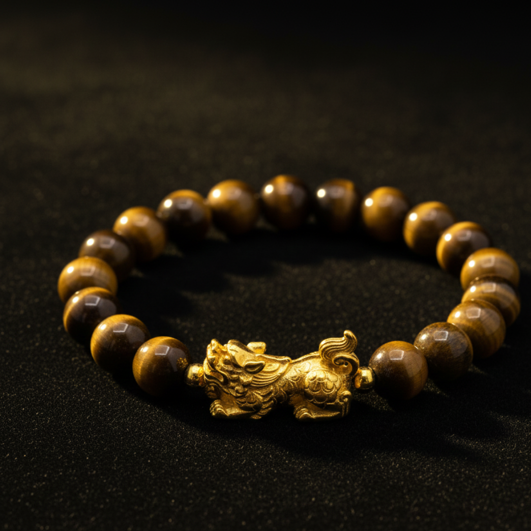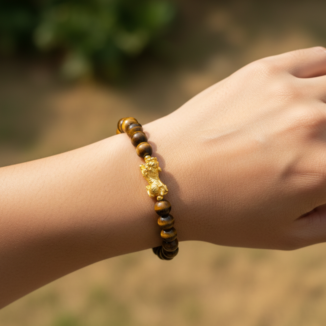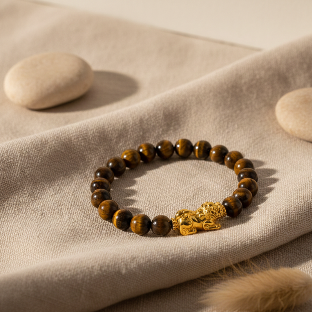 Tiger Stone Pixiu Bracelet – Shiv Shakti Ratna Find Courage • Attract Wealth • Restore Emotional Balance Step into your power with the Tiger Stone Pixiu Bracelet by Shiv Sakti Ratan, expertly handcrafted using 100% natural Tiger Eye crystals. Designed for those who seek courage, stability, and abundance, this bracelet blends the grounding energy of Tiger Eye with the wealth-attracting force of the Pixiu, a legendary creature believed to bring luck and prosperity. Whether you're facing personal challenges, striving for emotional balance, or seeking success and protection, this bracelet is a powerful companion on your spiritual and personal journey. Key Benefits of Tiger Eye Crystal Overcome Fear & Build Confidence Tiger Eye is known for strengthening inner resolve, helping you rise above survival fears, phobias, and self-doubt. Emotional Stability & Calmness Promotes peace, grounding, and emotional clarity—ideal for reducing stress, anxiety, and emotional overwhelm. Mental Focus & Clarity Supports sharper thinking, better decision-making, and a balanced mind during challenges. Self-awareness & Personal Growth Encourages introspection, emotional resilience, and a deeper understanding of your own strengths. Pixiu Symbolism — Attract Wealth & Protection The ancient Pixiu is widely revered in Feng Shui for its powerful energetic properties. It is believed to: Attract wealth, abundance, and prosperity Ward off evil, negativity, and misfortune Bring continuous luck, success, and good fortune Together with Tiger Eye, Pixiu forms a potent combination of courage + protection + wealth. Who Should Wear This Bracelet? Perfect for all genders, especially: Individuals seeking to overcome fears & phobias Introverts wanting more confidence Athletes & fitness enthusiasts aiming for performance and endurance Ambitious professionals with high goals Adventure lovers seeking enhanced mental and physical strength Why Wear Crystals on the Left Hand? According to ancient energy principles: The left hand absorbs energy, while the right hand releases it Wearing crystals on the left hand allows you to receive their healing and protective benefits This enhances emotional balance, intuition, and spiritual grounding For maximum impact, the Tiger Stone Pixiu Bracelet is recommended to be worn on the left hand. Product Highlights 100% Natural Tiger Eye Crystals Handcrafted with Precision & Purity Powerful Pixiu Wealth Charm Durable, Premium Quality Suitable for Men & Women Ideal for Daily Wear or Gifting Unlock confidence, attract prosperity, and protect your energy with the Tiger Stone Pixiu Bracelet – Shiv Sakti Ratan. A timeless spiritual accessory for courage, growth, and abundance.