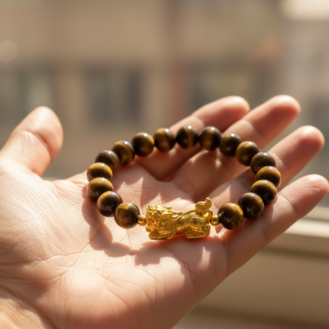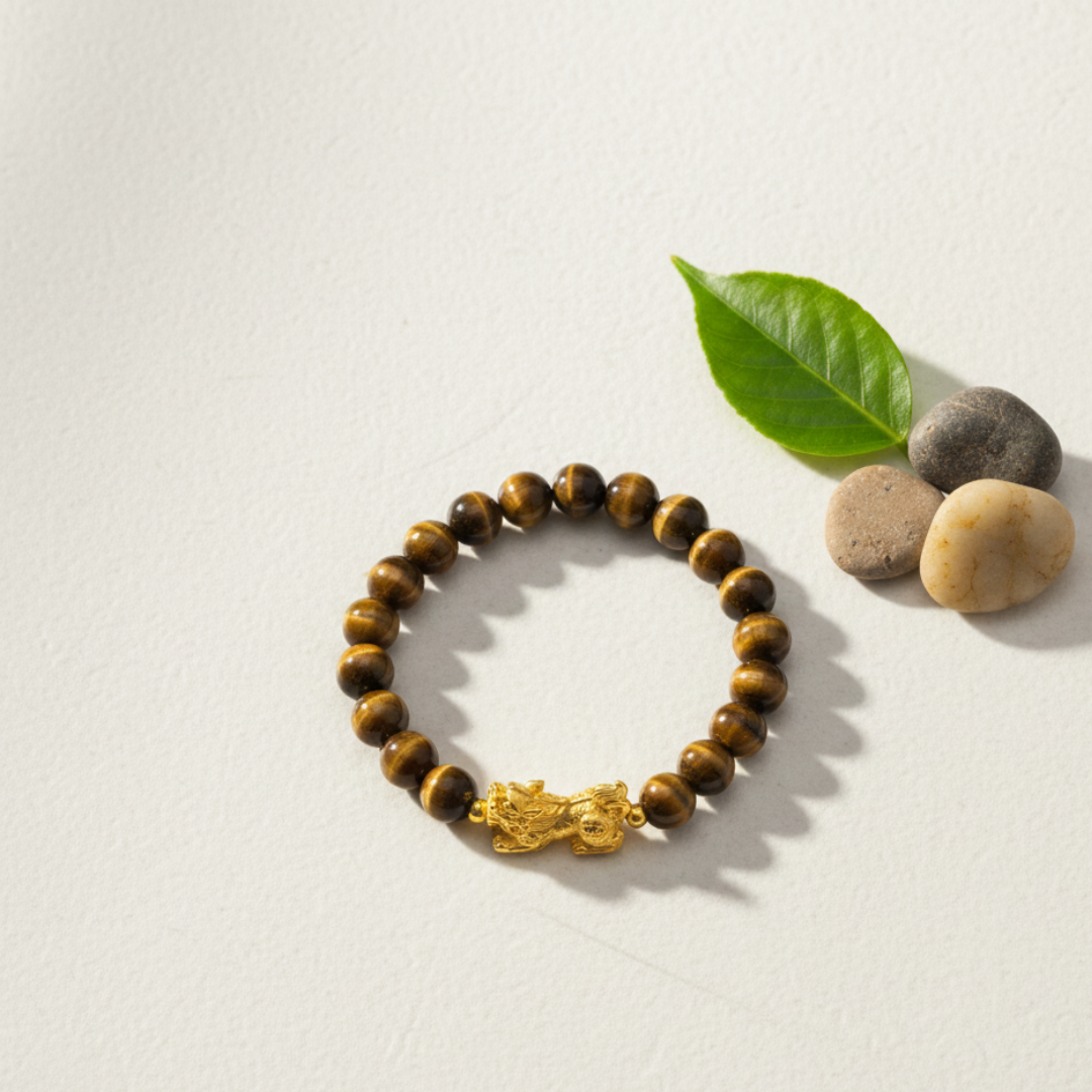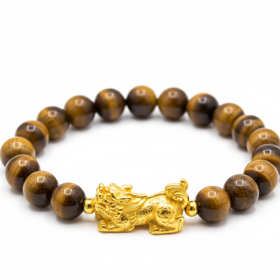Tiger Stone Pixiu Bracelet – Shiv Shakti Ratna Find Courage • Attract Wealth • Restore Emotional Balance Step into your power with the Tiger Stone Pixiu Bracelet by Shiv Sakti Ratan, expertly handcrafted using 100% natural Tiger Eye crystals. Designed for those who seek courage, stability, and abundance, this bracelet blends the grounding energy of Tiger Eye with the wealth-attracting force of the Pixiu, a legendary creature believed to bring luck and prosperity. Whether you're facing personal challenges, striving for emotional balance, or seeking success and protection, this bracelet is a powerful companion on your spiritual and personal journey. Key Benefits of Tiger Eye Crystal Overcome Fear & Build Confidence Tiger Eye is known for strengthening inner resolve, helping you rise above survival fears, phobias, and self-doubt. Emotional Stability & Calmness Promotes peace, grounding, and emotional clarity—ideal for reducing stress, anxiety, and emotional overwhelm. Mental Focus & Clarity Supports sharper thinking, better decision-making, and a balanced mind during challenges. Self-awareness & Personal Growth Encourages introspection, emotional resilience, and a deeper understanding of your own strengths. Pixiu Symbolism — Attract Wealth & Protection The ancient Pixiu is widely revered in Feng Shui for its powerful energetic properties. It is believed to: Attract wealth, abundance, and prosperity Ward off evil, negativity, and misfortune Bring continuous luck, success, and good fortune Together with Tiger Eye, Pixiu forms a potent combination of courage + protection + wealth. Who Should Wear This Bracelet? Perfect for all genders, especially: Individuals seeking to overcome fears & phobias Introverts wanting more confidence Athletes & fitness enthusiasts aiming for performance and endurance Ambitious professionals with high goals Adventure lovers seeking enhanced mental and physical strength Why Wear Crystals on the Left Hand? According to ancient energy principles: The left hand absorbs energy, while the right hand releases it Wearing crystals on the left hand allows you to receive their healing and protective benefits This enhances emotional balance, intuition, and spiritual grounding For maximum impact, the Tiger Stone Pixiu Bracelet is recommended to be worn on the left hand. Product Highlights 100% Natural Tiger Eye Crystals Handcrafted with Precision & Purity Powerful Pixiu Wealth Charm Durable, Premium Quality Suitable for Men & Women Ideal for Daily Wear or Gifting Unlock confidence, attract prosperity, and protect your energy with the Tiger Stone Pixiu Bracelet – Shiv Sakti Ratan. A timeless spiritual accessory for courage, growth, and abundance.